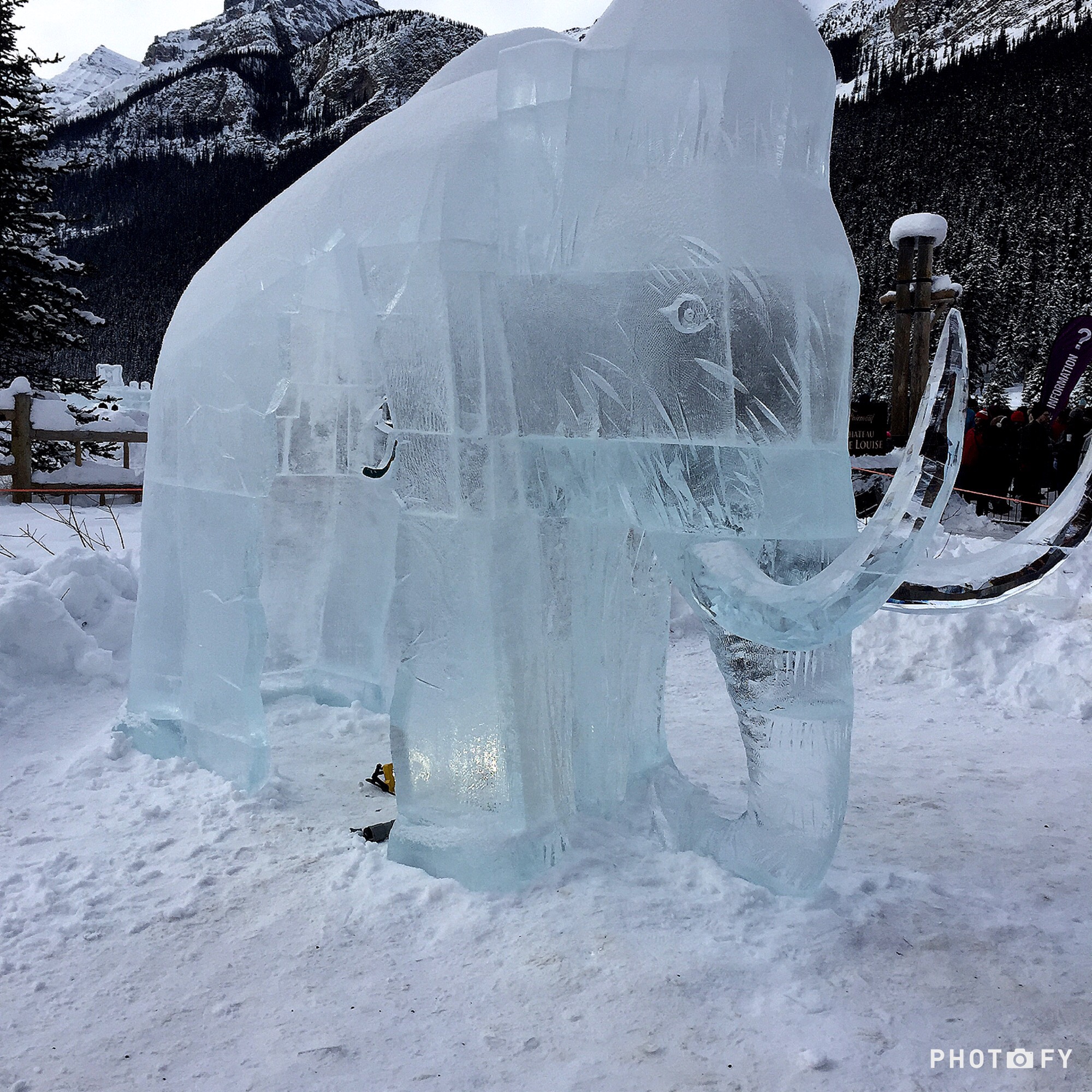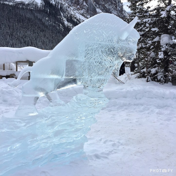 As we near the end of my journey, an incredibly detailed ice sculpture of a buffalo, standing proud and keeping guard.