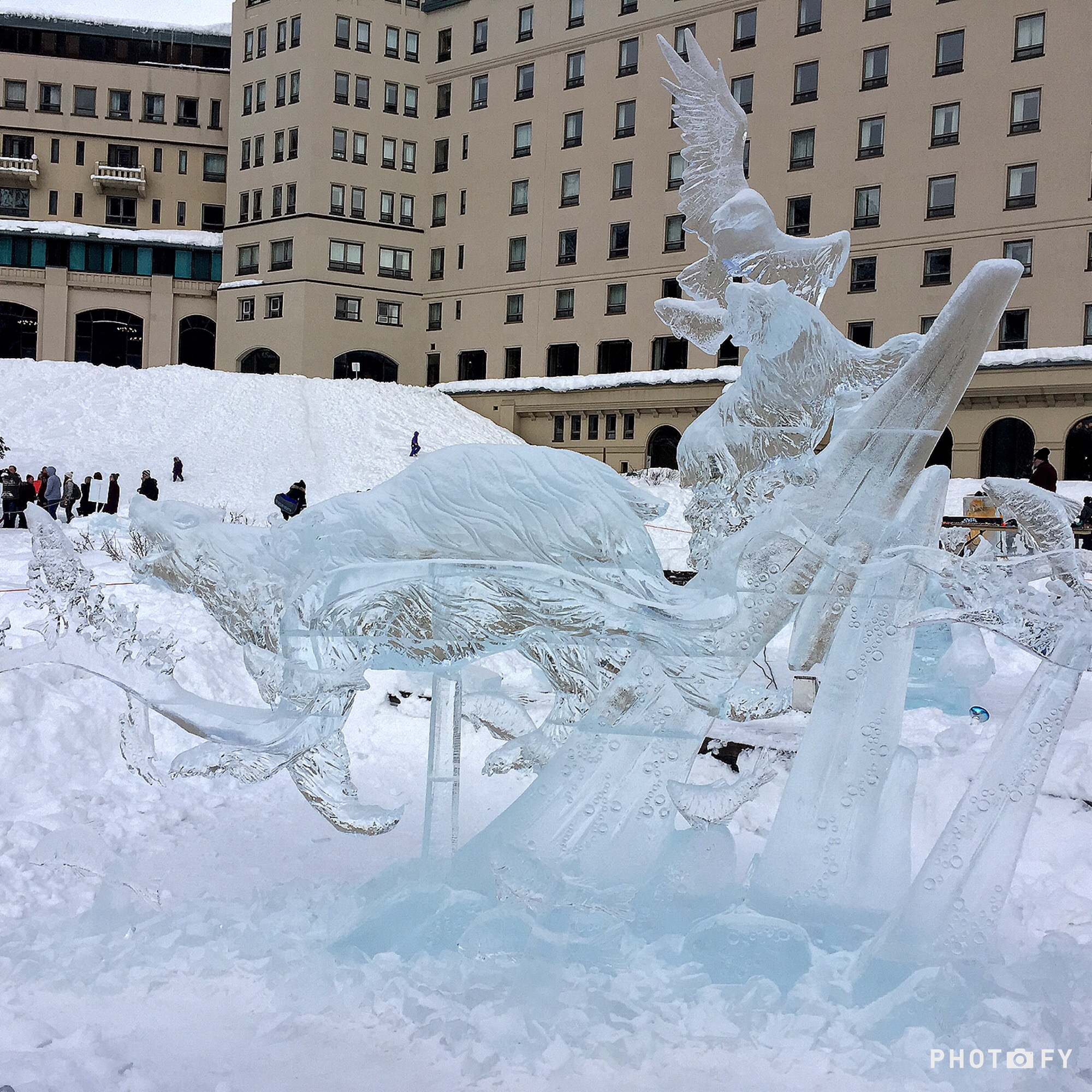 Both of the following ice sculptures depicted some of Canada’s various wildlife in action. Truly remarkable how they captured the water effects.